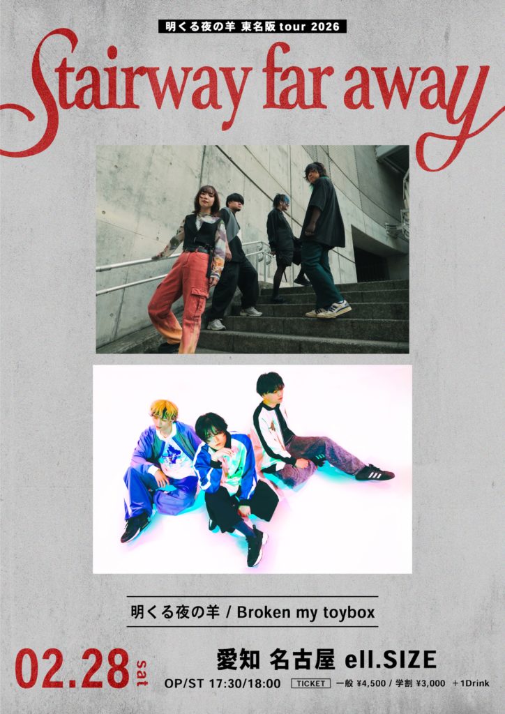 ■ACT:明くる夜の羊 / Broken my toybox■TICKET:一般¥4,500 / 学割¥3,000(+1Drink¥600)■チケットURL:https://eplus.jp/akuruyosheep/※12/17(水) 18:00-オフィシャル3次先着先行予約
