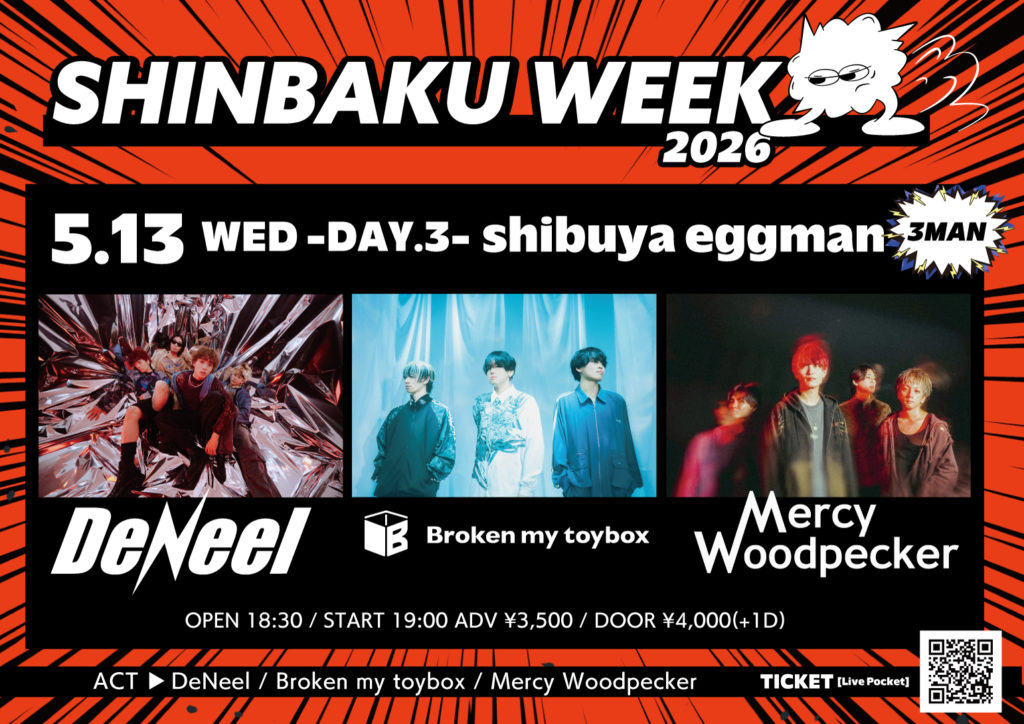 ■ACT:DeNeel / Broken my toybox / Mercy Woodpecker■TICKET:¥3,500(+1D)